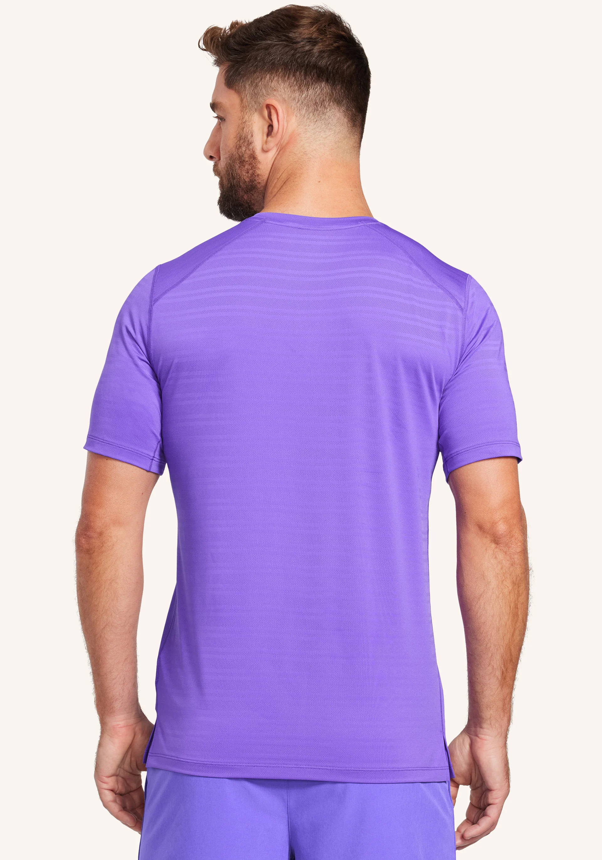- Jacquard mesh fabrication that feels lightweight while containing four-way stretch and moisture wicking properties