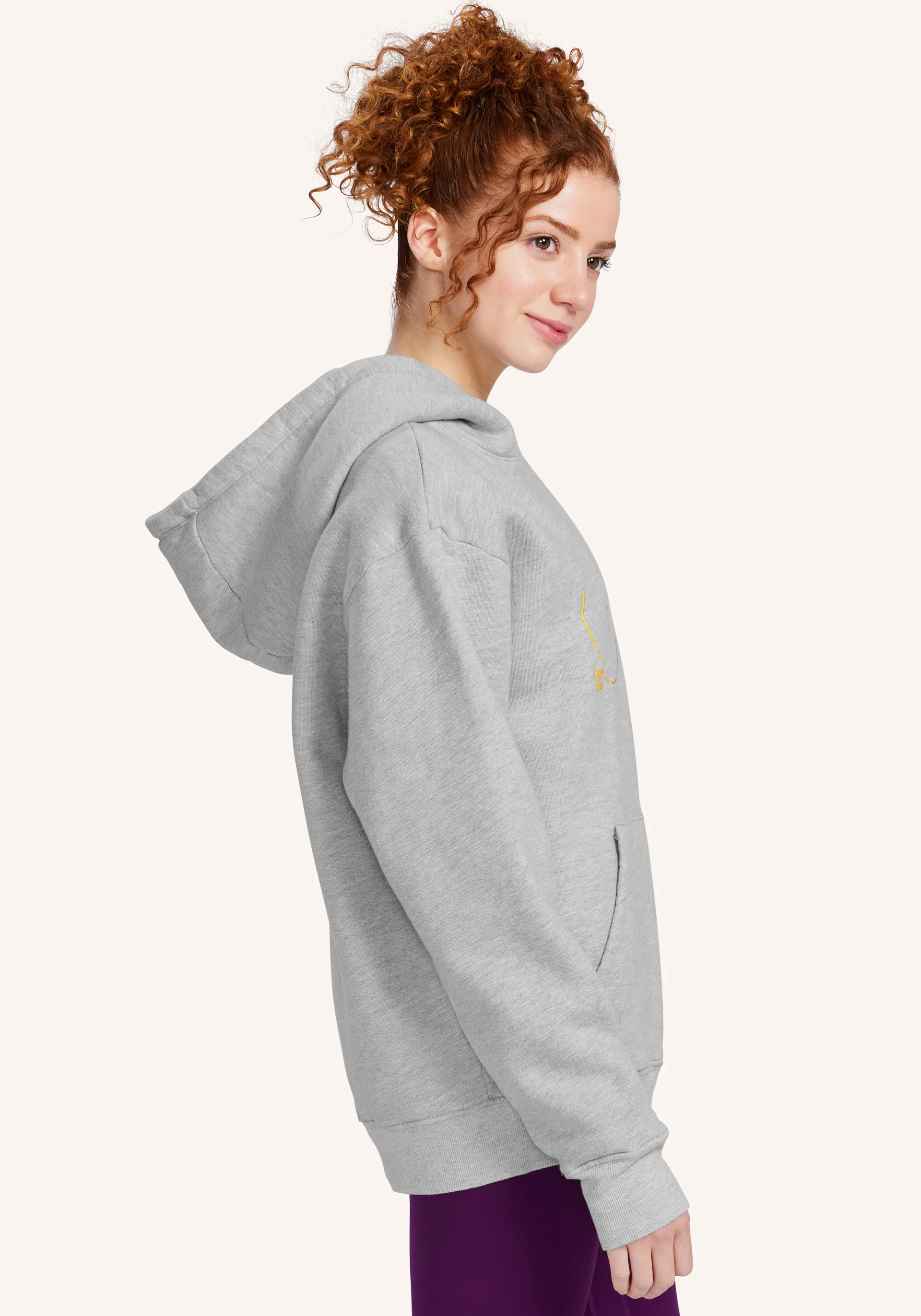 - Gender neutral, cotton fleece sweatshirt with an exaggerated hood and kangaroo pocket detail